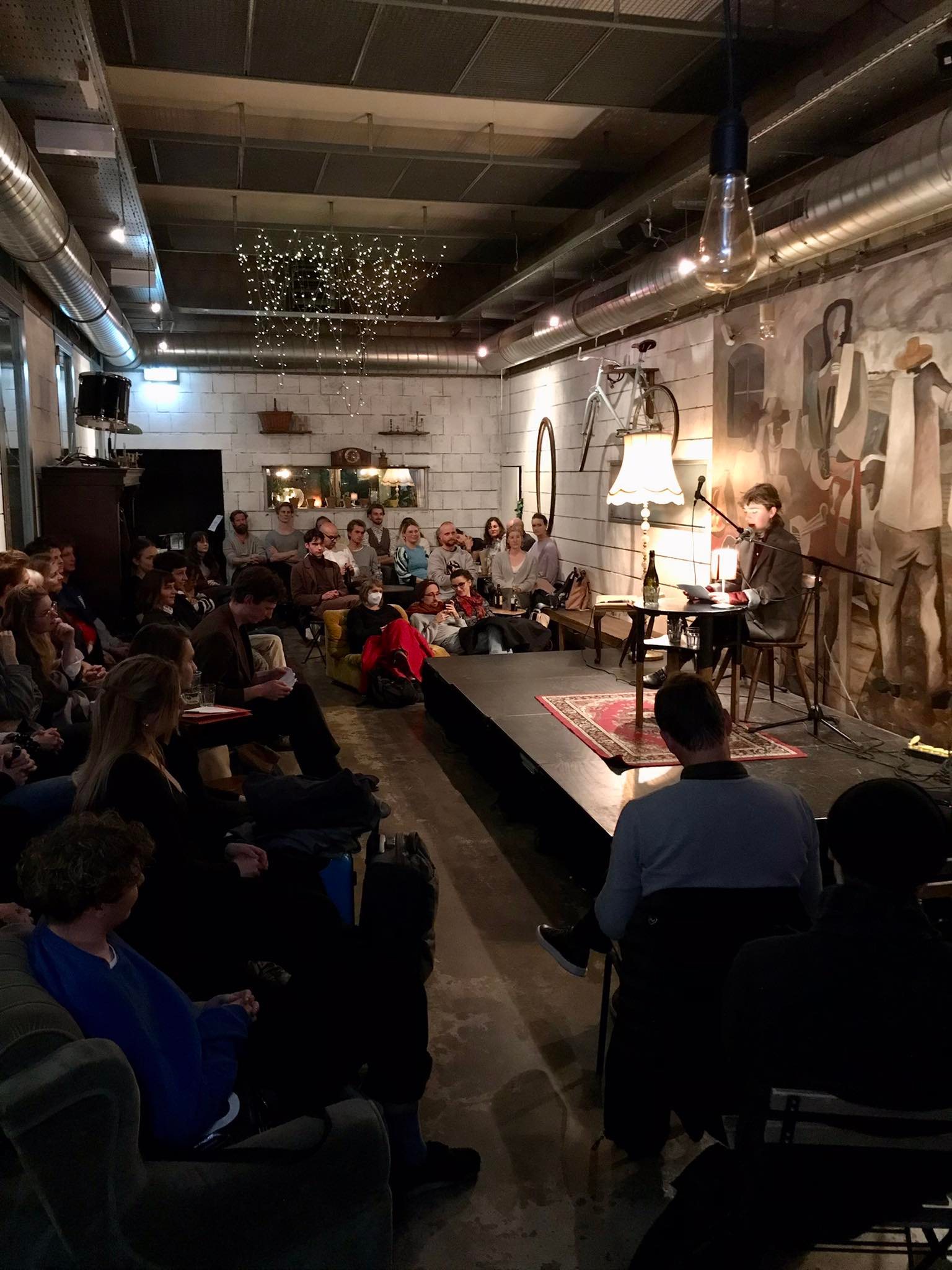 Das Grundformat: Jungautor_innen lesen monatlich vor einem kleinem Publikum Texte und besprechen sie anschließend. Dieser Raum, ein Hybrid aus Lesereihe und Textwerkstatt, steht Menschen allen Alters und Erfahrungsniveaus offen, die auch allesamt vertreten sind.